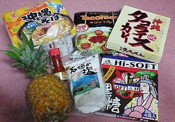 沖縄そばのインスタント(5袋入り)、タコスライスの素、タコスライスカリーの素(これはおまけで買ってくれました)
